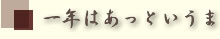 後から考えますと確かにおじいちゃんの言う通りです。好きな事をしている1時間はあっと言う間に時間が経ち、自分にとって嫌な事を又は辛い事をしている時間は1時間が非常に長く感じますね。一年が早く経つと言う事はつまり1年が充実しており、何よりも元気で居られる、と言った事から一年が早く感じる訳です。「若い者はええな、私らの年齢に成ると一年が早い早い」これもおじいちゃんの言葉を借りますと、一年が早いと言う事はその年齢に成っても元気で居れる、非常に有り難い事ではないでしょうか? |