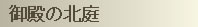 | 宸殿の北側には、御殿の北庭があります。ここは、仁和寺御殿本来の庭であり、南庭とは対照的な山水の庭園で、中央に心字池を配した池泉廻遊式といわれる形式の庭です。この庭は、元禄三年に加来道意・白井童松によって作られたものです。庭の中央には滝を設け、右手の築山には光格天皇御遺愛の茶席、飛濤亭〈重要文化財〉が望まれます。また、霊明殿奥の木立の中には、江戸時代の画家、尾形光琳の遺亭といわれる茶席、遼廓亭〈重要文化財〉があります。 |