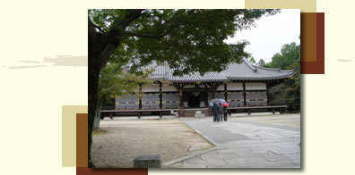 江戸の再興時に京都御所の「紫宸殿」を移築したもので、平安時代の代表的な建築様式である寝殿造りの遺構としてとても貴重なものです。屋根は桧皮葺より本瓦葺へと改修され、内部には本尊の阿弥陀三尊像が祀られています。また、仁和寺では本堂を金堂と呼びます。仁和寺は真言宗御室派の総本山であり、重要な儀式や法要が営まれます。また、毎朝の勤行はいつでも公開されています。国宝。